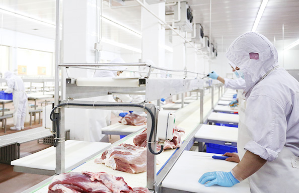 賓西肉業(yè)項目于2009年正式啟動,車間全部按歐盟衛(wèi)生標準設計建造。全套引進德國伴斯、荷蘭斯托克公司的生豬屠宰、分割系統(tǒng)。具備年屠宰分割50萬頭生豬,加工18萬噸冷鮮、速凍產品以及8萬噸高檔肉制品產能,產品達到出口歐州、中東、日、韓等國家和地區(qū)的標準。